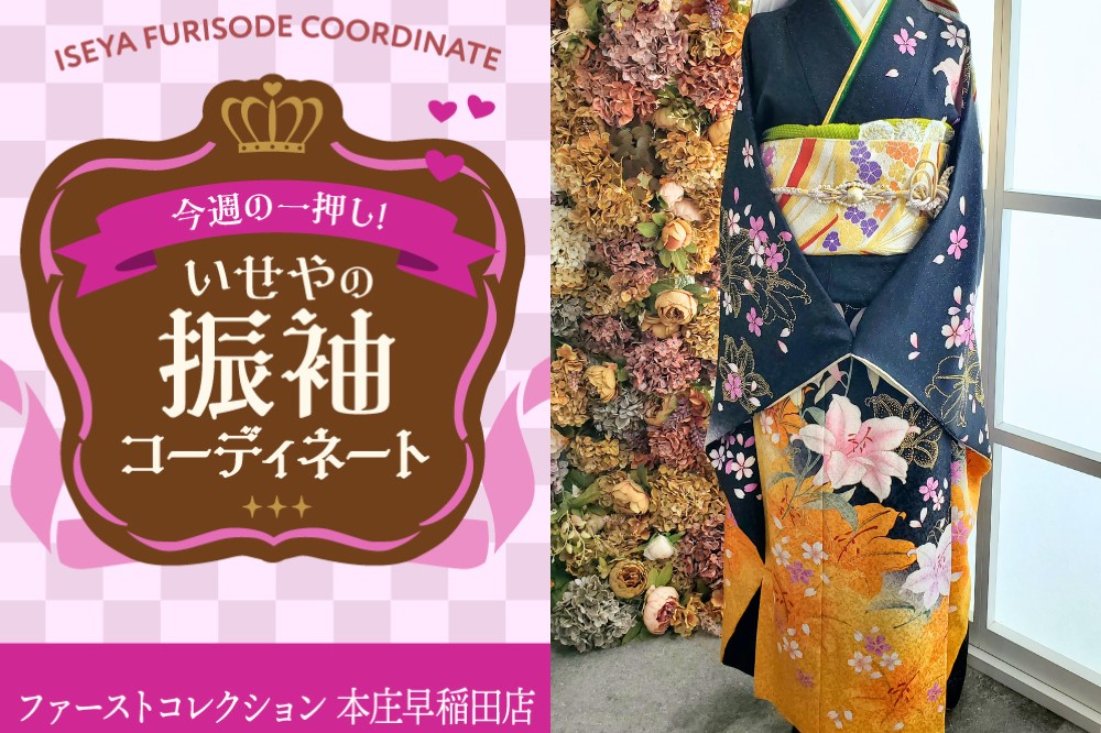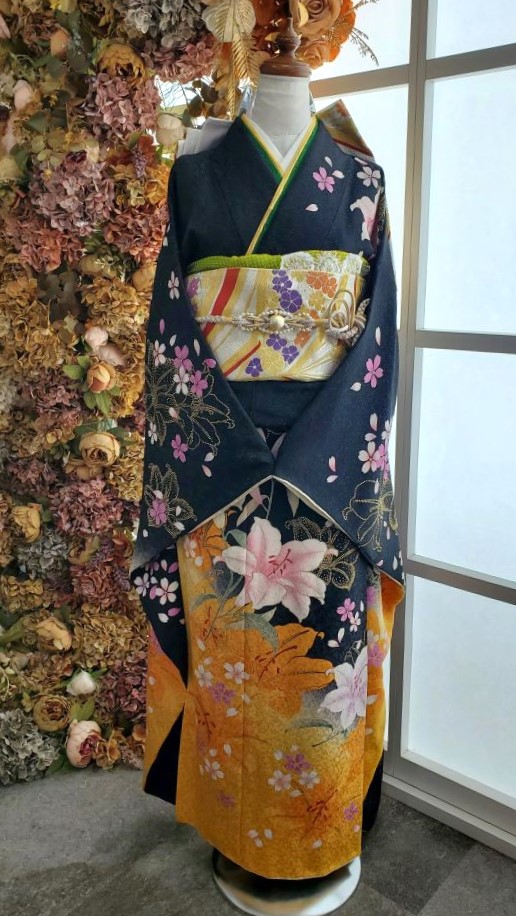 【今週のイチオシ振袖コーディネート】黒地ユリ柄の個性派振袖~本庄早稲田店~