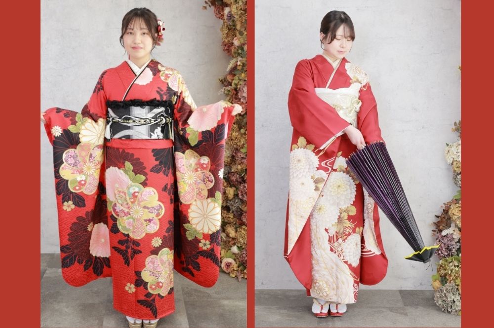 同じ色の振袖でも、振袖に入る柄や色で雰囲気や入れる小物が大きく異なりますよ。