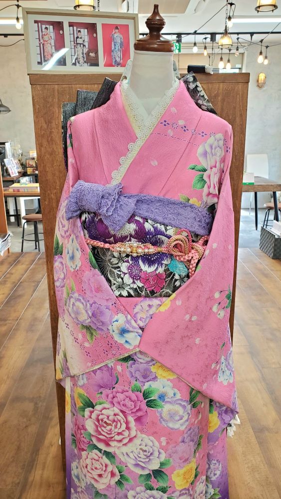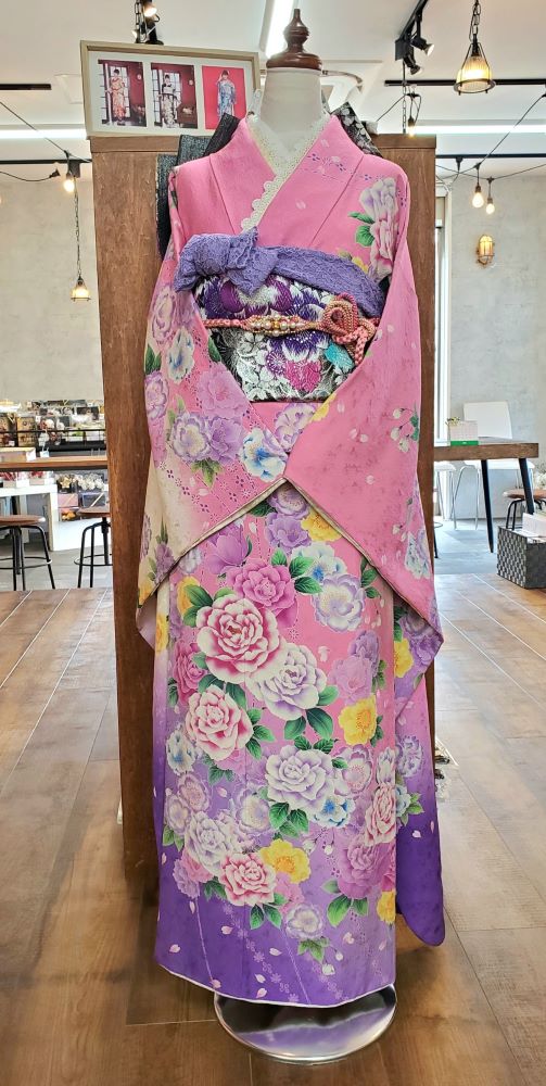 【今週のイチオシ振袖コーディネート】ピンク×紫プリンセス風振袖~本庄早稲田店~