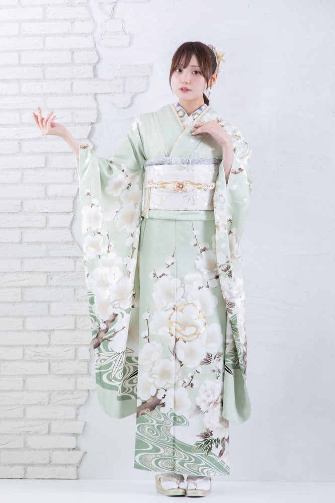 おしゃれ感度の高いあなたには、トレンドのくすみカラーの振袖がおすすめです。洗練された色合いが、あなたの大人っぽさをより魅力的に見せてくれます。