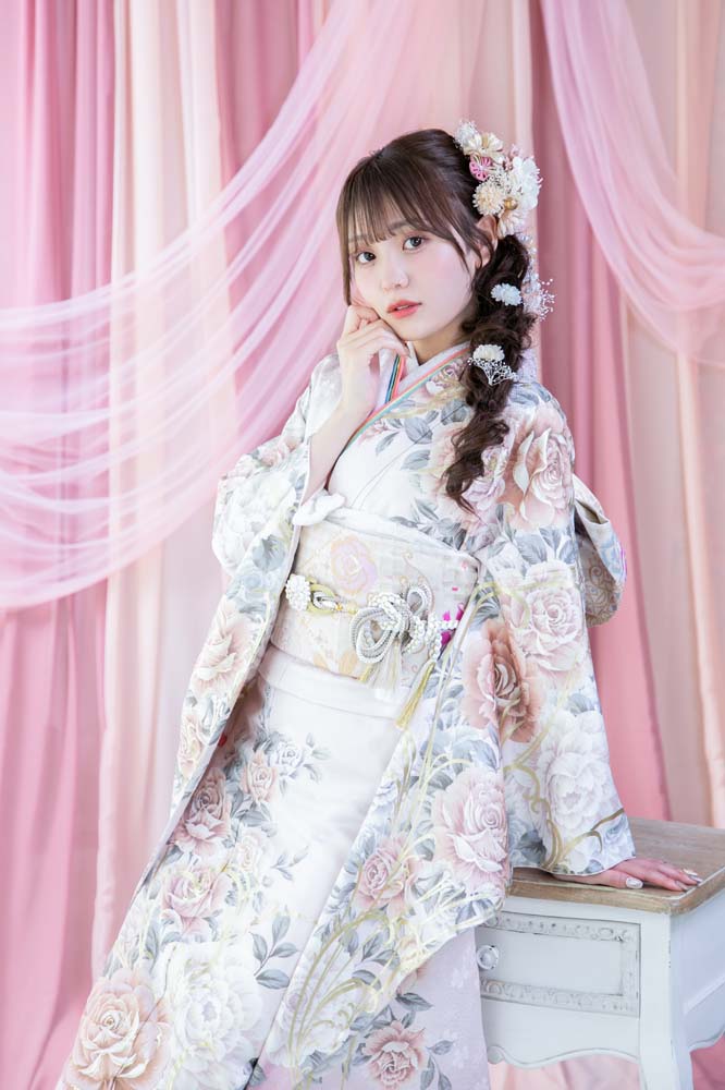 振袖だけでなく、衿や帯揚げなどの小物でレースやキラキラを取り入れたり、ヘアメイクなどのトータルコーディネートが大切です。