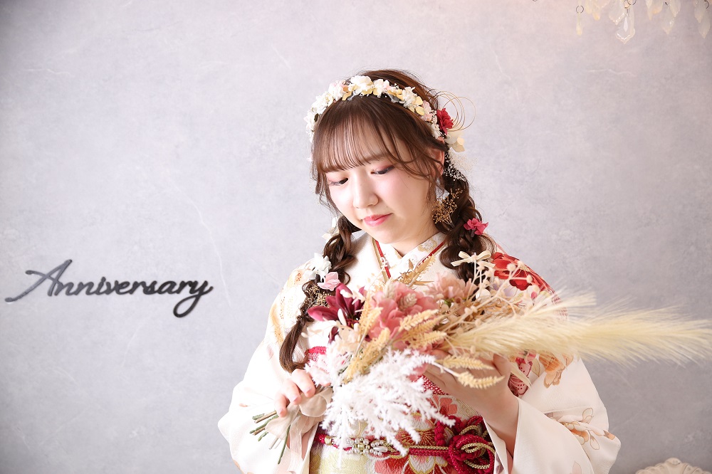 振袖選びから前撮りの写真撮影、成人式当日まで一連してサポートさせていただいております。
