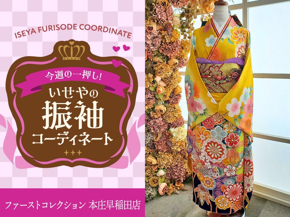 今週のイチオシ振袖コーディネート~個性派黄色の古典柄振袖~本庄早稲田店
