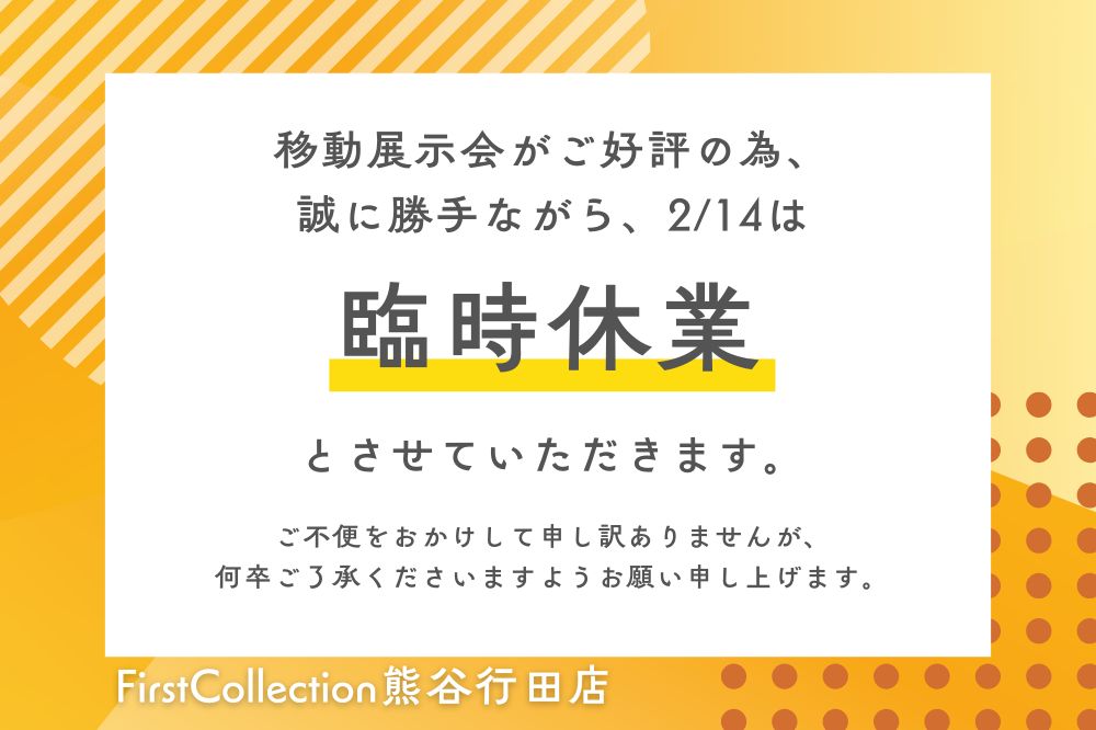 【熊谷行田店】2/14(土)は臨時休業とさせていただきます。